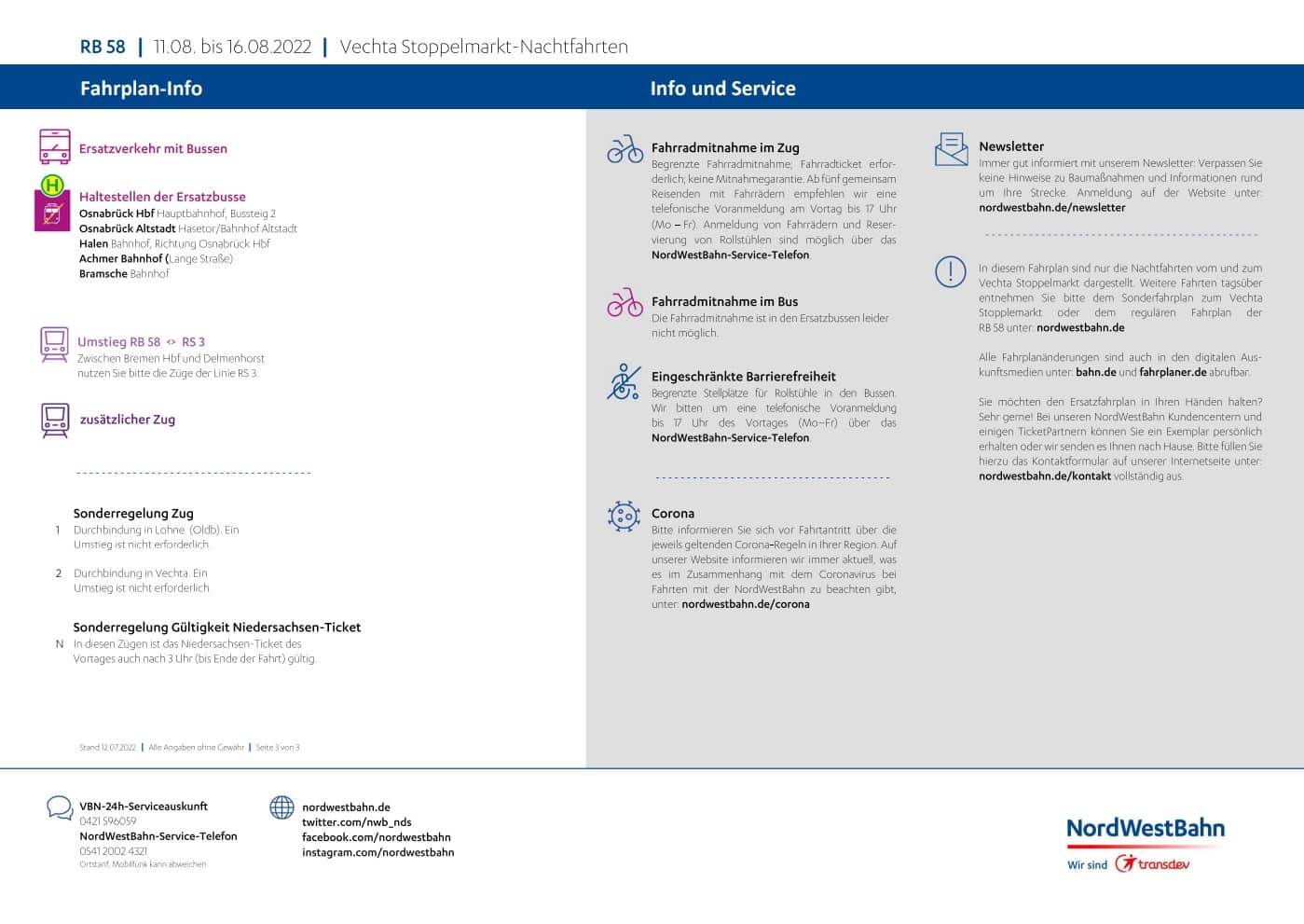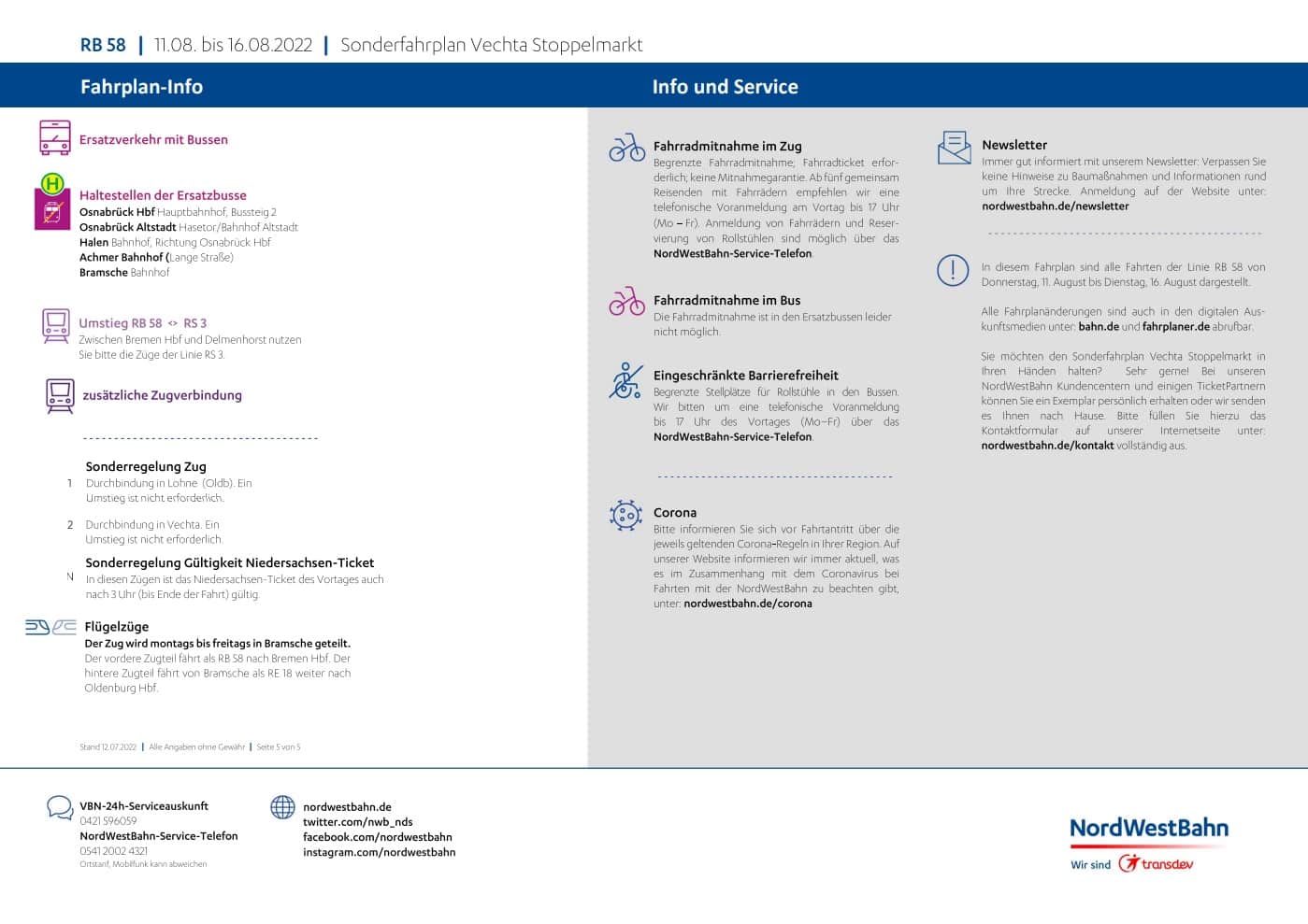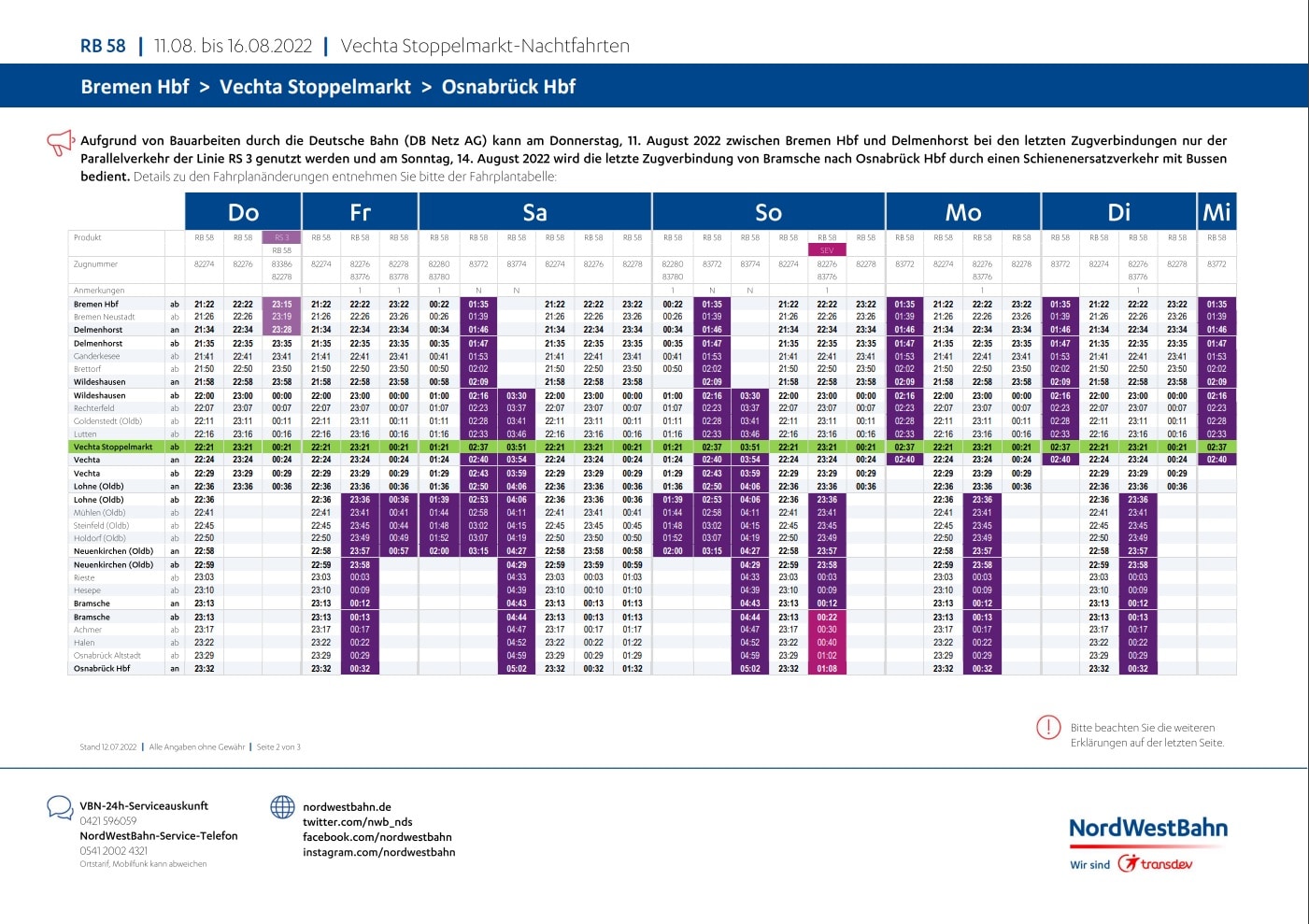 Die Informationen über das 9€-Ticket zum Stoppelmarkt hatten wir euch ja bereits geliefert, nun hat die NordWestBahn den Stoppelmarkt-Zugfahrplan veröffentlicht. Bereits vor einigen Tagen informierte uns die NordWestBahn darüber, dass es zu Einschränkungen im Zugverkehr durch Bauarbeiten kommen wird.