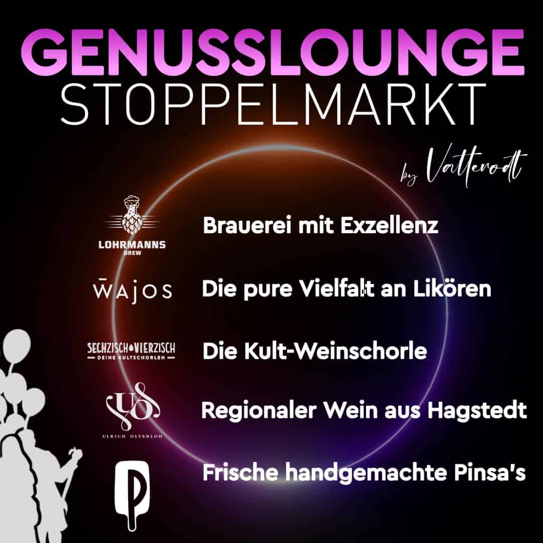 Das der Stoppelmarkt längst mehr ist, also nur ein tpyisches Volksfest mit halb vollen Biergläsern, matschige Pommes und verbrannte Bratwurst, wurde auch in den letzten Jahren oft bewiesen. In diesem Jahr kommt wieder ein Highlight dazu, denn Vatterodt Feinkost startet die Genusslounge in der nähe des Amtmannsbult.